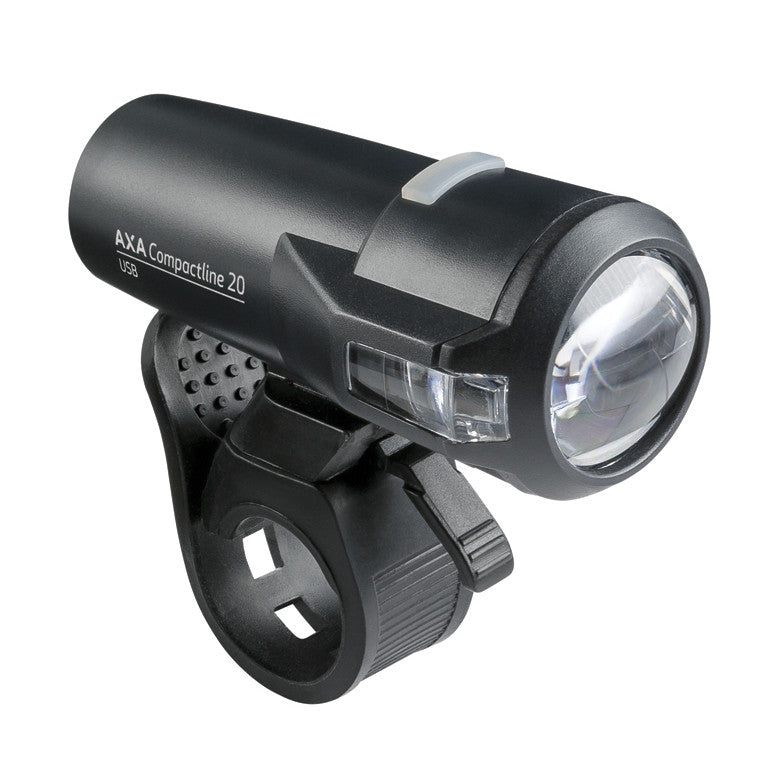 AXA Compactline Front 20 Lux on USB-ladattava, sopii kaikkiin polkupyöriin ja on erittäin helppo kiinnittää ja irrottaa kumihihnojen avulla. Akun käyttöikä on 1000 latauskertaa, joten se on erinomainen vaihtoehto paristokäyttöisille valoille. Valot toimivat kaikissa sääolosuhteissa, jopa sateessa ja lumessa, -10°C pakkasesta +40°C lämpöön.