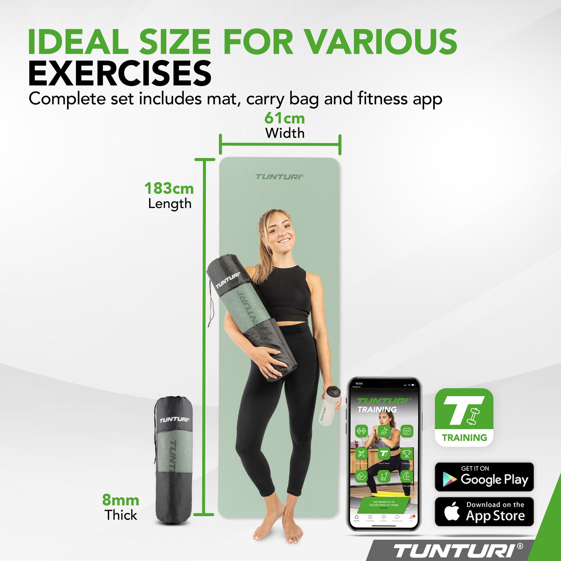 ✓ Erittäin paksu 8 mm:n matto takaa maksimaalisen mukavuuden harjoittelussa