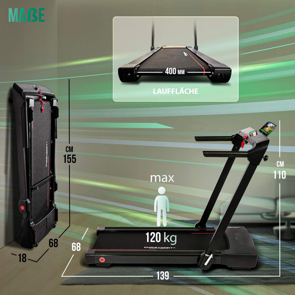 Koe monipuolisuus ja tehokkuus tällä Christopeit 2in1 -juoksumyllyllä, joka tarjoaa sinulle juoksumattoa ja juoksurataa yhdessä laitteessa. Tämän innovatiivisen laitteen avulla voit räätälöidä jokaisen harjoituksen tarpeidesi mukaan ja treenata kotona tai toimistossa säästä riippumatta. Jättämällä kahvat pystyasentoon voit käyttää laitetta juoksumatona, jonka maksiminopeus on 6 km/h. Kun kahvat ovat ylhäällä, laite saavuttaa 14 km/h maksiminopeuden, joka on ihanteellinen juoksemiseen. Christopeit 2in1 -juoksumatossa on sisäänrakennetut kaiuttimet, joten voit kuunnella suosikkimusiikkiasi harjoituksen aikana.
