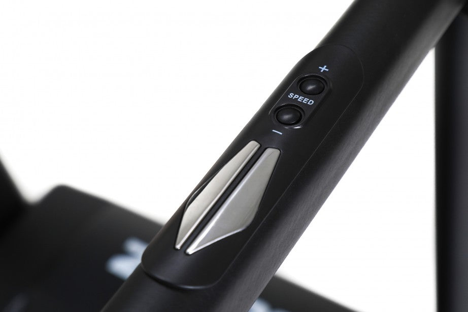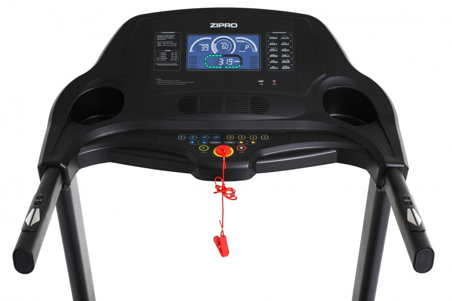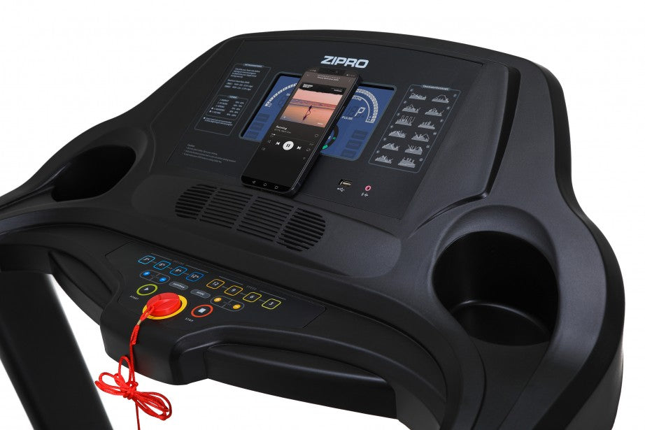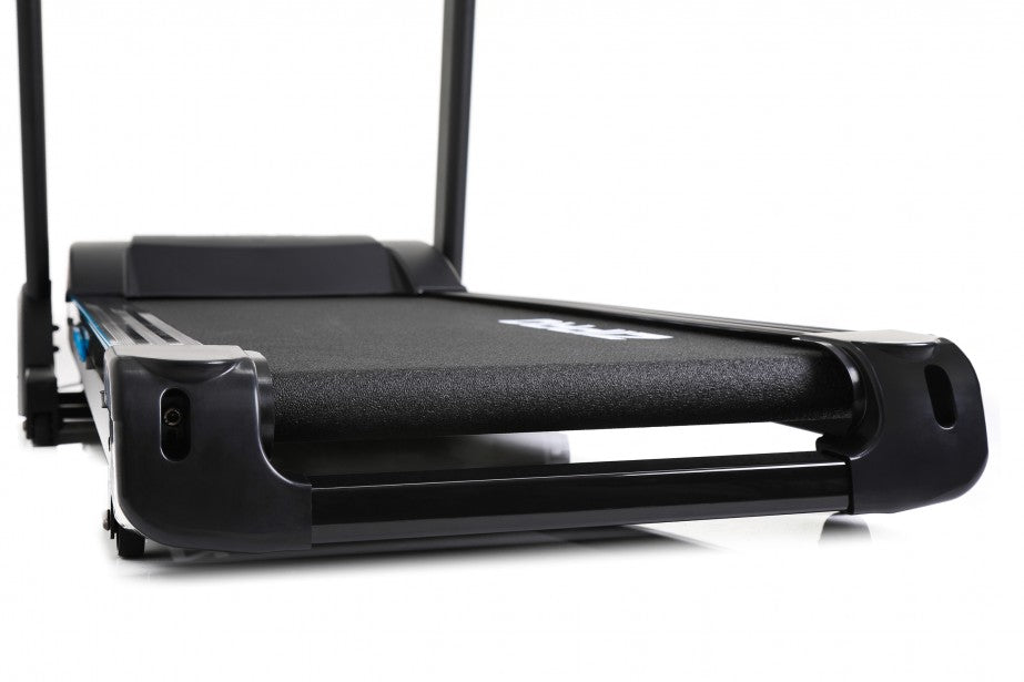 Pikavalintapainikkeet, helppo käyttöönotto ja pullonpidike ovat kaikki ominaisuuksia, jotka lisäävät käyttömukavuutta. Turvallisuudesta huolehtii liukumaton juoksumatto, jota ympäröivät sivupaneelit, joihin voi astua, kädensijat ja turvaklipsi, joka pysäyttää juoksumattoa sen irrotessa.