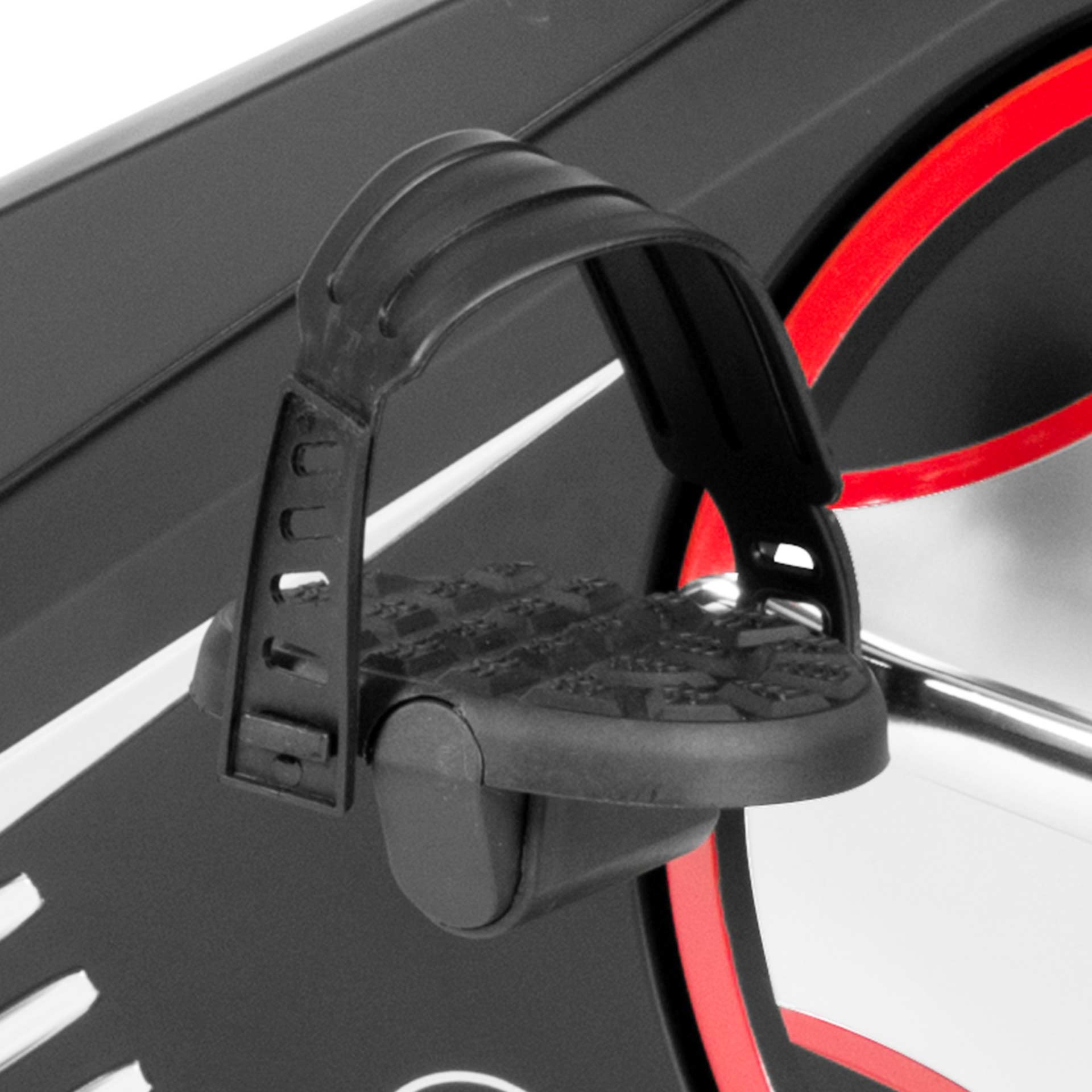 Harjoitusvyössä on tabletin ja älypuhelimen pidike sekä helppokäyttöinen suuri LCD-näyttö lukemien kätevää seurantaa varten, jota voi käyttää helposti kosketusherkillä painikkeilla. Käsipulssianturit on integroitu käsikahvoihin, ja niitä voidaan käyttää sykkeen seurantaan harjoituksen aikana. Kahvoja ja satulaa voidaan säätää kallistuksen mukaan, ja satulan korkeutta voidaan säätää pystysuoraan ja vaakasuoraan pikakiinnikkeellä, jotta voidaan valita mukava yksilöllinen harjoitusasento. Luistonestopolkimet, joissa on erillinen poljinkiristin, takaavat jalan vakaan asennon polkimilla. Etukuljetuspyörät mahdollistavat koneen helpon liikuttelun, ja takimmaiset säädettävät jalkakiinnikkeet takaavat, että kone pysyy tukevasti paikallaan.