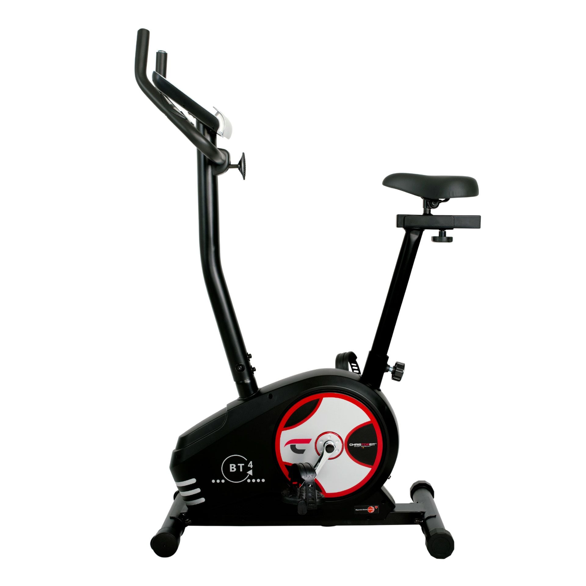 Christopeit BT 4 on vakaa poljinergometri, jossa on kulumaton 7 kg:n magneettijarrujärjestelmä ja hiljainen hihnavoimansiirto hiljaista ja tasaista harjoittelua varten. Vastustasoja voidaan säätää kätevästi 24 vastuksen säätöasteella. Helppokäyttöisessä Soft-Touch-tietokoneessa, jossa on tabletin ja älypuhelimen pidike, on LCD-näyttö, joka on jaettu kuuteen ikkunaan, mikä mahdollistaa useiden näyttöjen näyttämisen samanaikaisesti. Sitä on helppo käyttää kosketusherkillä painikkeilla.