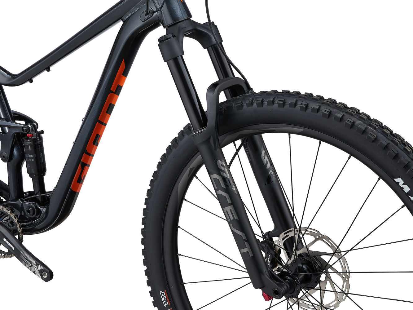 - Haarukka: Crest 34 SL RCL, 140 mm, Boost 15x110 QR, räätälöity Giantille.