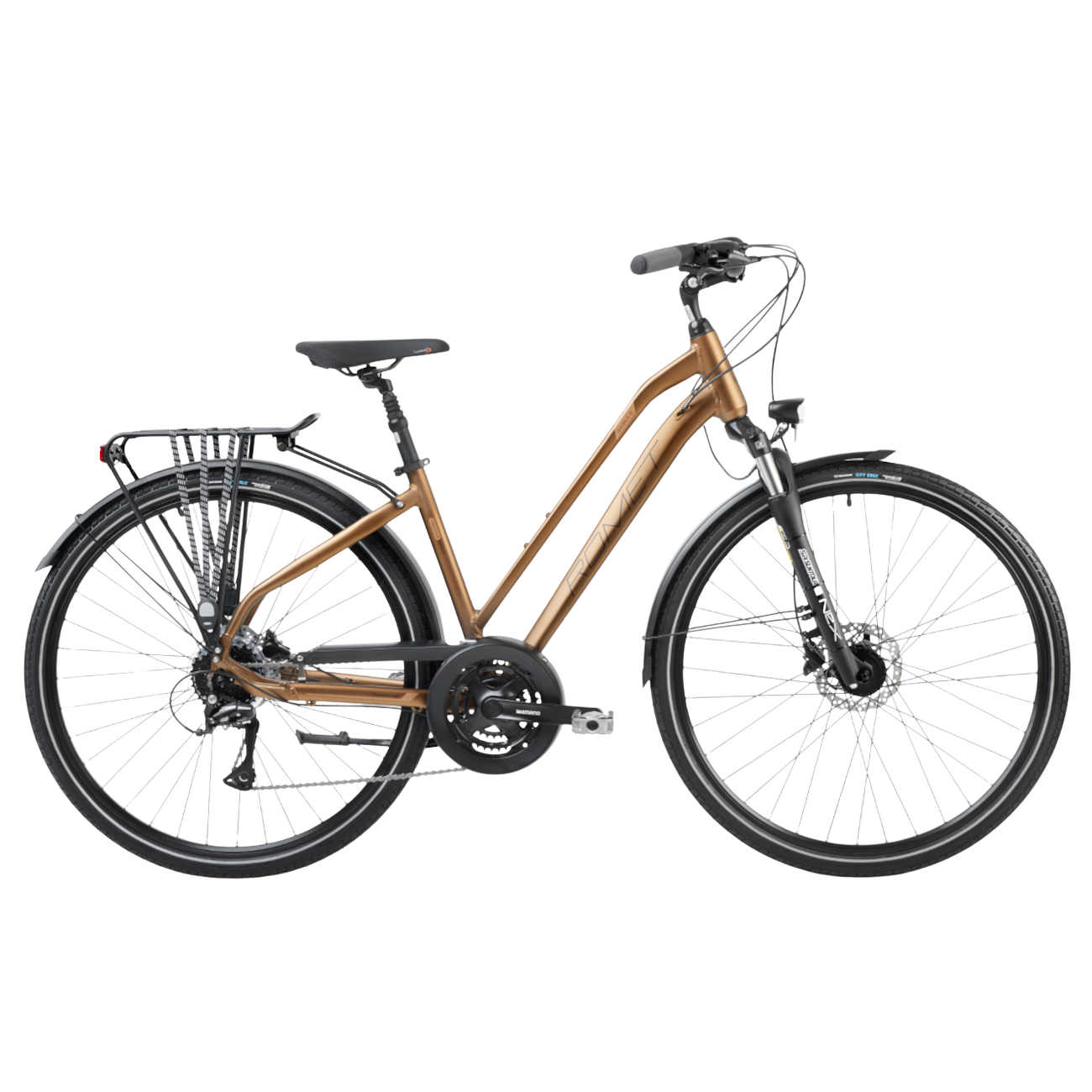 Monipuolinen ja houkutteleva Gazela 6 -naispyörä on kevyt mutta kestävä, tyylikäs mutta käytännöllinen. Se sopii täydellisesti jokapäiväiseen pyöräilyyn tai retkeilyyn. Siinä on kumihihnoilla varustettu kantorunko, lokasuojat, etu- ja takavalot sekä potkulaite, joten siinä on kaikki, mitä käytännöllinen pyöräilijä tarvitsee. Sountour-haarukan 63 mm:n vaimentimet, 24-vaihteiset vaihteet ja Shimanon hydrauliset levyjarrut takaavat mukavan, nopean ja turvallisen ajon.