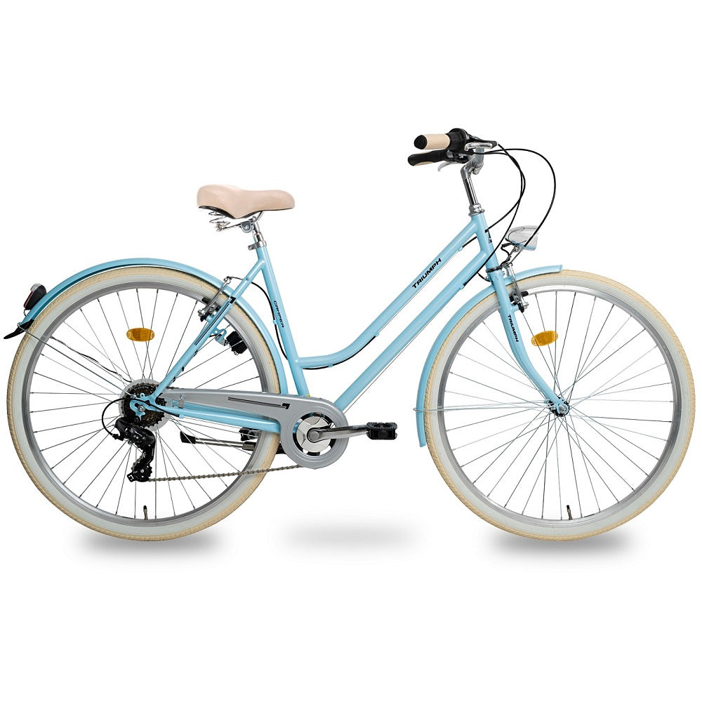 Klassinen Romet Triumph -naistenpyörä on suunniteltu naisille, jotka rakastavat tyyliä ja käytännöllisyyttä yhdessä. Pehmeän, leveän satulan, suurten 28-tuumaisten pyörien ja tasapainoisen runkogeometrian ansiosta Triumph on erittäin mukava kaupunkipyörä, jonka selkään voi istua ja jolla voi ajaa selkä suorana. Käytännöllisyyttä lisäävät tukeva tavarateline hihnoineen, ketjusuoja, lokasuojat, valot ja jalusta.