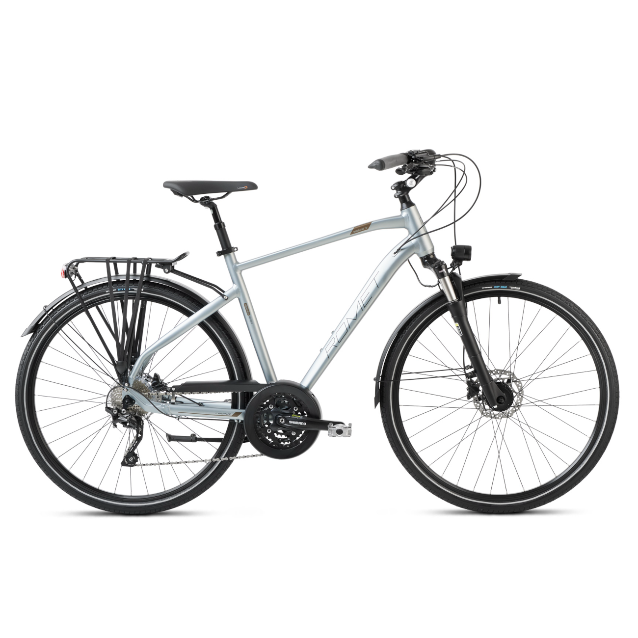 Romet Wagant 9 on erityisesti miehille suunniteltu, täysin varusteltu matkapyörä - pyörä, jossa on seikkailua ja mukavuutta. Wagant 9:n ytimessä on kevyt mutta kestävä alumiinirunko. Wagant 9 on monikäyttöinen pyörä, jossa on runsaasti lisävarusteita, joiden avulla voit seurata kutsumuksiasi tarpeen mukaan. Tukevan matkatavararungon ansiosta voit ottaa kaiken tarvitsemasi mukaan, ja lokasuojat ja ketjusuoja pitävät sinut kuivana kovassakin sateessa. Romet Wagant ei pelkää epätasaisia teitä ja maastoseikkailuja - etuakseli, 30-vaihteinen Shimano Deore -vaihteisto ja hydrauliset jarrut vievät sinut minkä tahansa esteen yli!