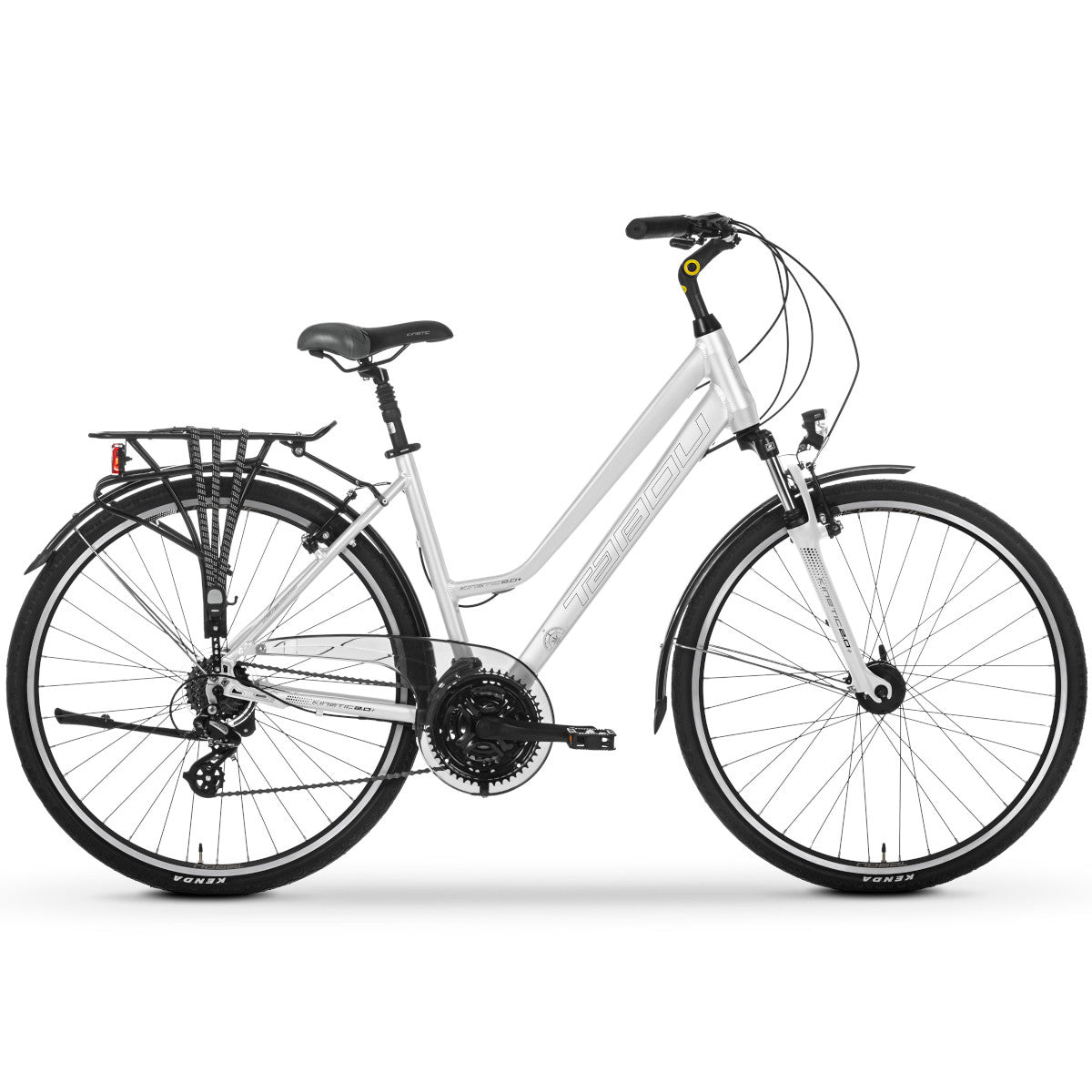 Oikean retkeilypyörän vakiovarusteisiin kuuluvat leveät kiinnityslevyt, kumihihnoilla ja jousikiinnikkeellä varustettu pakkauskehikko sekä jalusta. Kinetic-pyörissä on myös etu- ja takavalot, jotka... Lue lisää