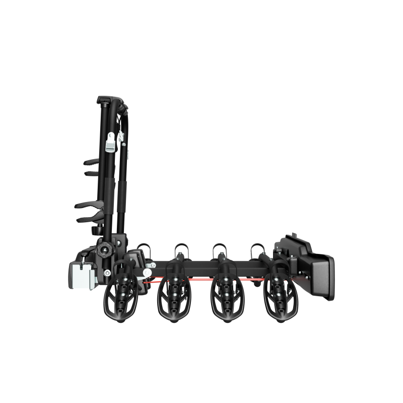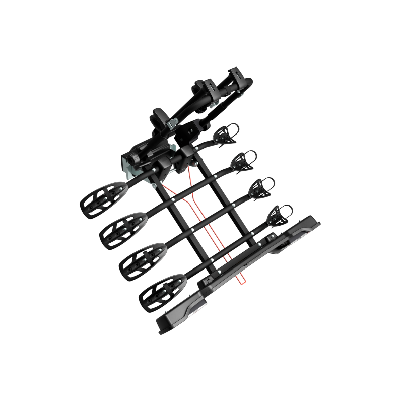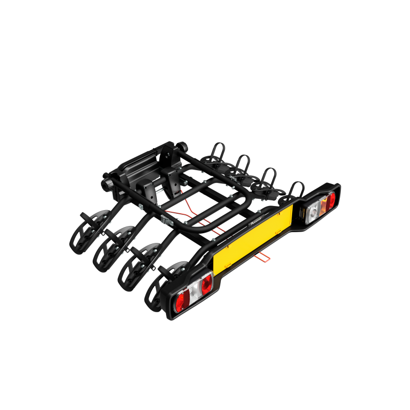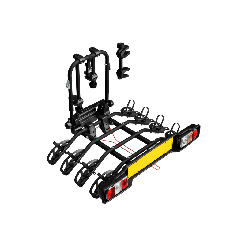 Yleiskäyttöinen vetokoukkuun kiinnitettävä polkupyöräteline Parma jopa neljälle polkupyörälle. Varustettu kiinnikkeillä toiselle, kolmannelle ja neljännelle polkupyörälle. Se on taloudellisin pikakiinnitysjärjestelmä.