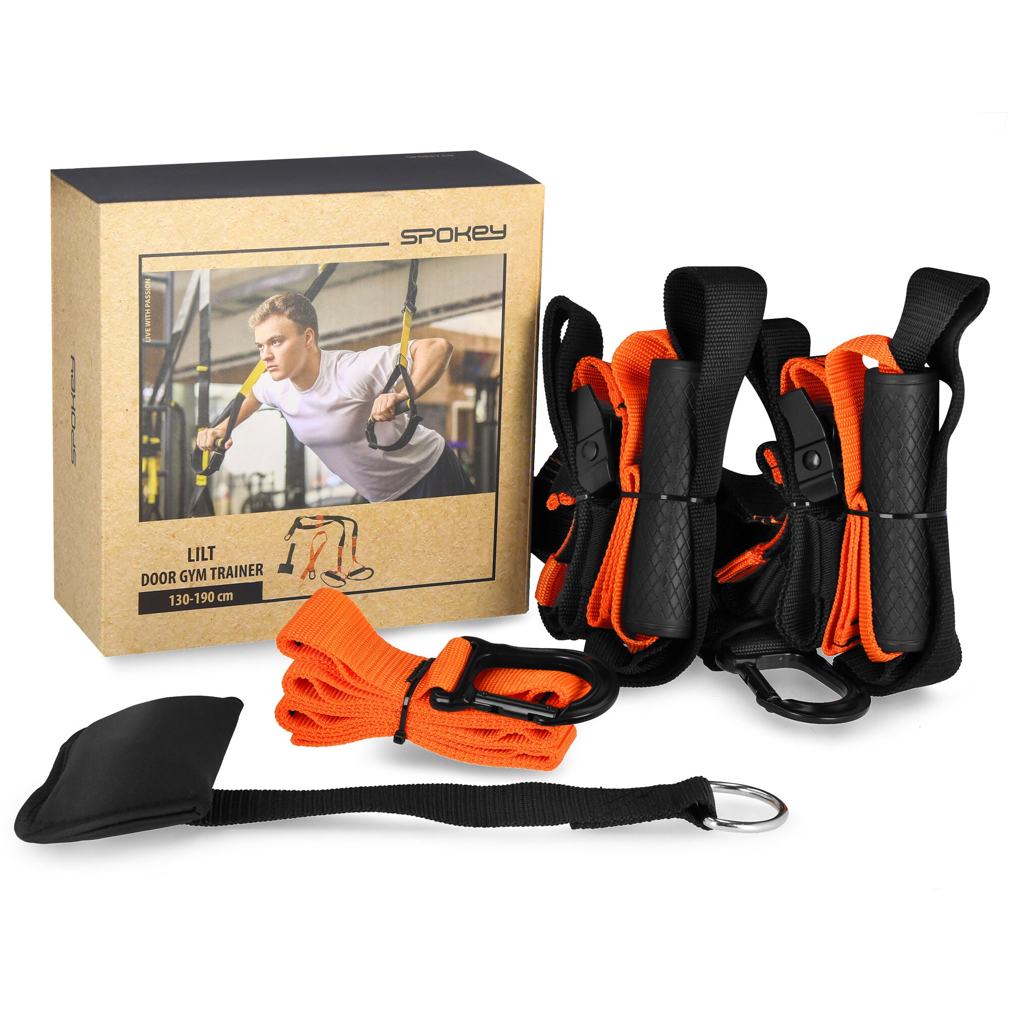 Spokey LILT -ovihihihna on hyvin yksinkertainen laite, joka käyttää painona kuntoilijan painoa. Siksi mitään lisävarusteita, kuten käsipainoja tai painoja, ei tarvita. Muotoiltujen kahvojen ansiosta nauha pysyy mukavasti kädessä. Loppujen lopuksi tukeva ote on turvallisen harjoittelun perusta! Kuminauhan pituus (max. 300 cm) mahdollistaa monenlaiset harjoitukset ovea käyttäen. Hihna voidaan kiinnittää ilman työkaluja - työnnä vain pää oven yläreunan läpi ja sulje ovi. Spokey LILTin avulla sinun ei tarvitse poistua kotoa saadaksesi täyden harjoituksen, joka pitää huolta vartalostasi ja muodostasi. Xfit Training Lint on valmistettu kestävästä materiaalista pitkän käyttöiän takaamiseksi.