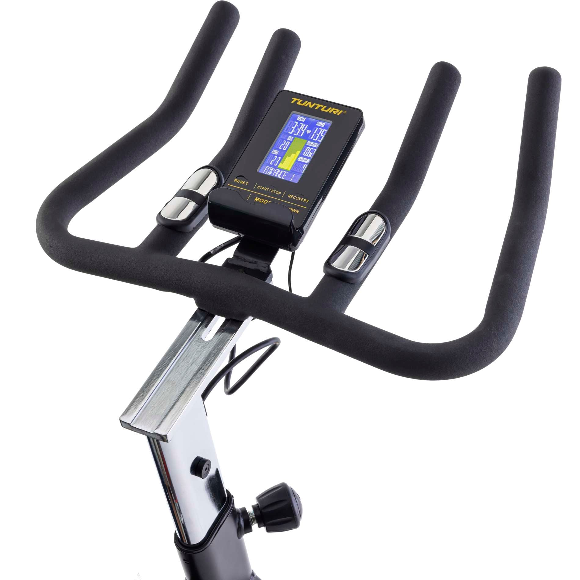 Treenaa kotona Tunturi Centuri S100 spinning-pyörällä. Kestävä polkupyörä, jossa on tukeva runko ja suuri, painava vauhtipyörä, on kaikki mitä tarvitset todelliseen treeniin.